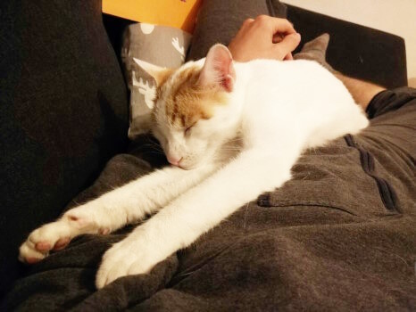 Zecki ist früher ein richtiger Straßenkater gewesen und ist deshalb ein ziemlich harter Kerl. Man merkt das, sobald er das Haus verlässt: Dann verhält er sich ganz anders! Im Haus ist er sehr verschmust, regelmäßig wurde ich zu einem Mittagsschlaf mit ihm zusammen „gezwungen“. Denn wenn eine Katze auf dir liegt, darfst du niemals aufstehen!