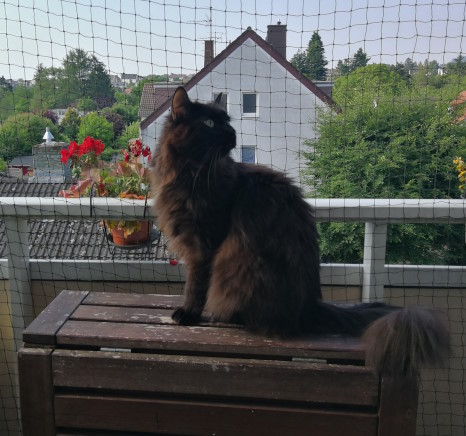 Die beiden Kater haben einen besonderen Platz in meinem Herzen. Ich war schon häufig bei Ihnen, auch für längere Aufenthalte. Beide haben ein ausgeprägtes Kuschelbedürfnis! Sie verbringen gerne Zeit auf dem Balkon und beobachten die Außenwelt oder verteidigen die Pappburg gegen sinistre Angriffe des Katzensitters.